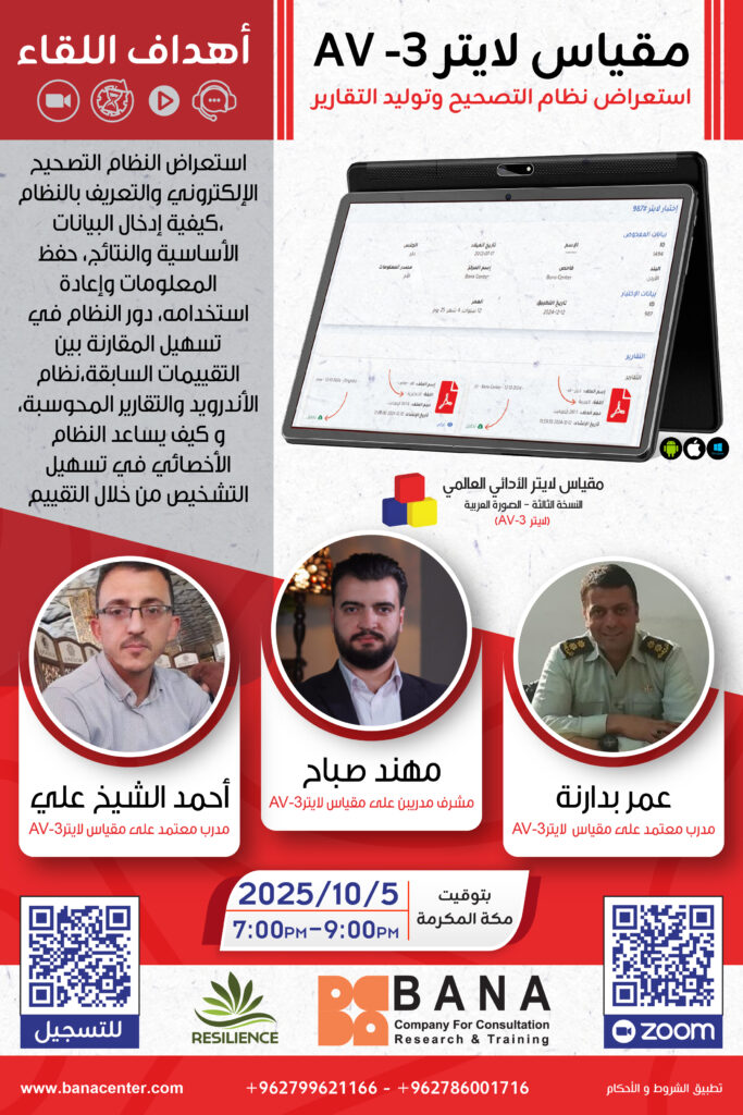 يسر بانا للاستشارات والأبحاث والتدريب دعوتكم لحضور اللقاء العلمي بعنوان: